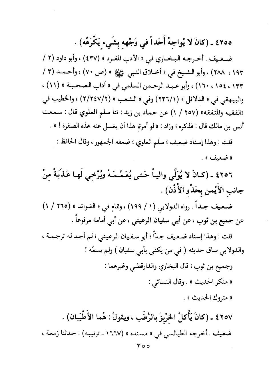 4255 - (كان لا يواجه أحداً في وجهه بشيء يكرهه) .