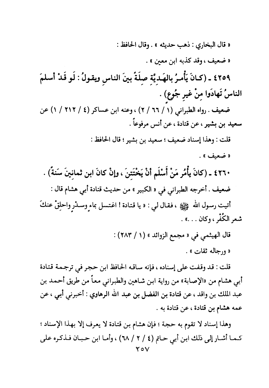 قلت: وهذا إسناد ضعيف؛ سعيد بن بشير؛ قال الحافظ: