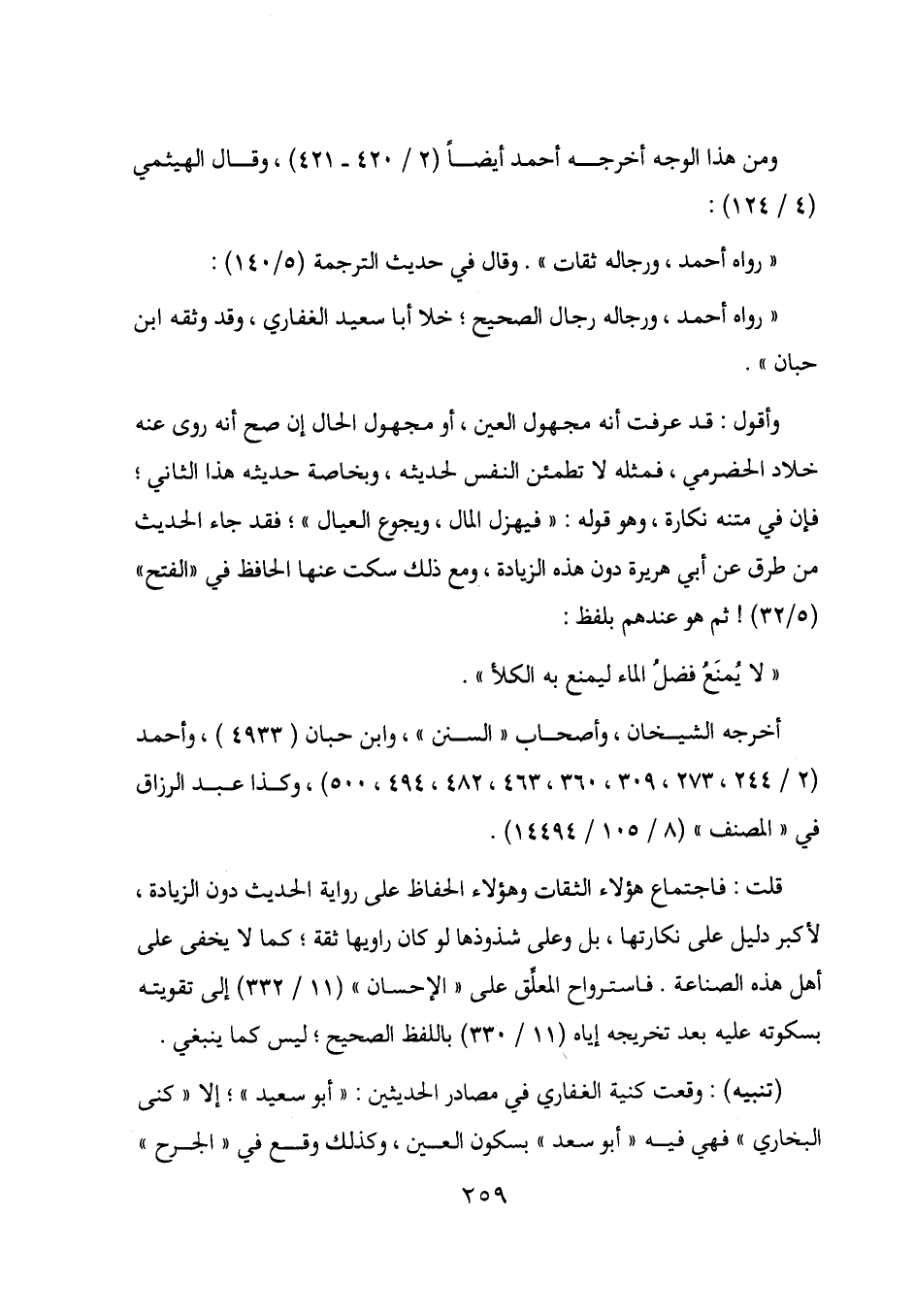 قلت: فاجتماع هؤلاء الثقات وهؤلاء الحفاظ على رواية الحديث دون الزيادة، لأكبر دليل على نكارتها، بل وعلى شذوذها لو كان راويها ثقة؛ كما لا يخفى على أهل هذه الصناعة. فاسترواح المعلق على "الإحسان" (11/ 332) إلى تقويته بسكوته عليه بعد تخريجه إياه (11/ 330) باللفظ الصحيح؛ ليس كما ينبغي.