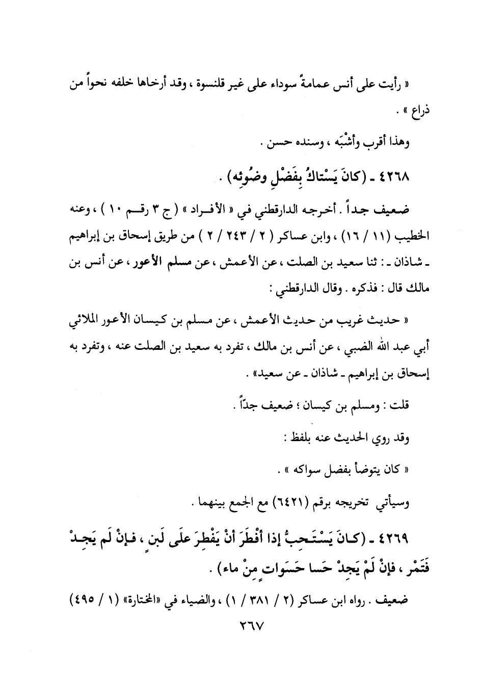 أخرجه الدارقطني في "الأفراد" (ج 3 رقم 10) ، وعنه الخطيب (11/ 16) ، وابن عساكر (2/ 243/ 2) من طريق إسحاق بن إبراهيم - شاذان -: حدثنا سعيد بن الصلت، عن الأعمش، عن مسلم الأعور، عن أنس بن مالك قال: فذكره. وقال الدارقطني: