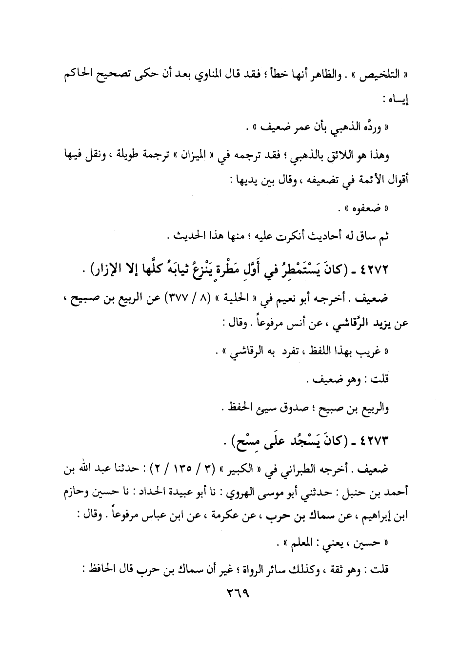 4272 - (كان يستمطر في أول مطرة ينزع ثيابه كلها إلا الإزار) .