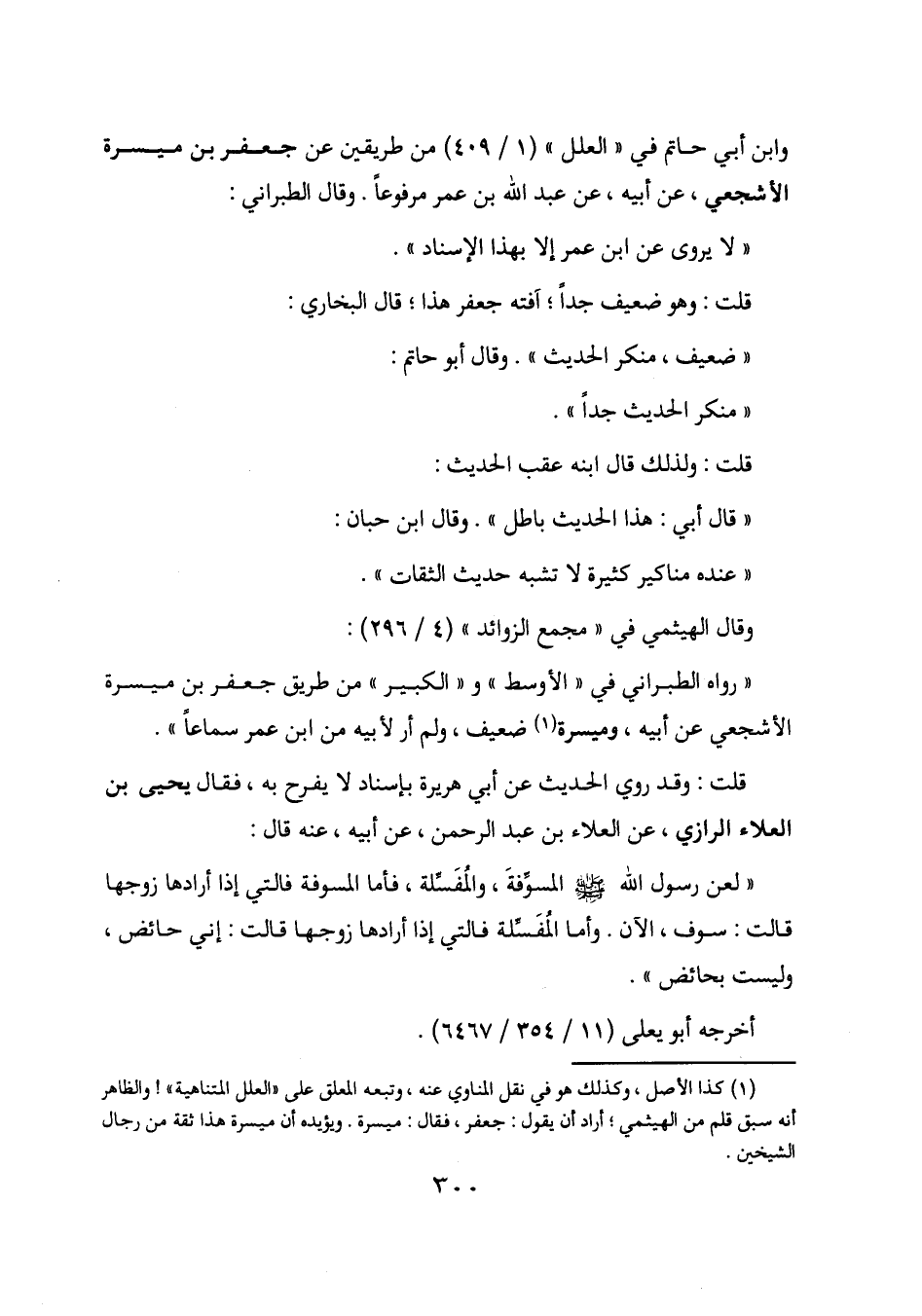 (1) كذا الأصل، وكذلك هو في نقل المناوي عنه، وتبعه المعلق على " العلل المتناهية "! والظاهر أنه سبق قلم من الهيثمي؛ أراد أن يقول: جعفر، فقال ميسرة. ويؤيده أن ميسرة هذا ثقة من رجال الشيخين.