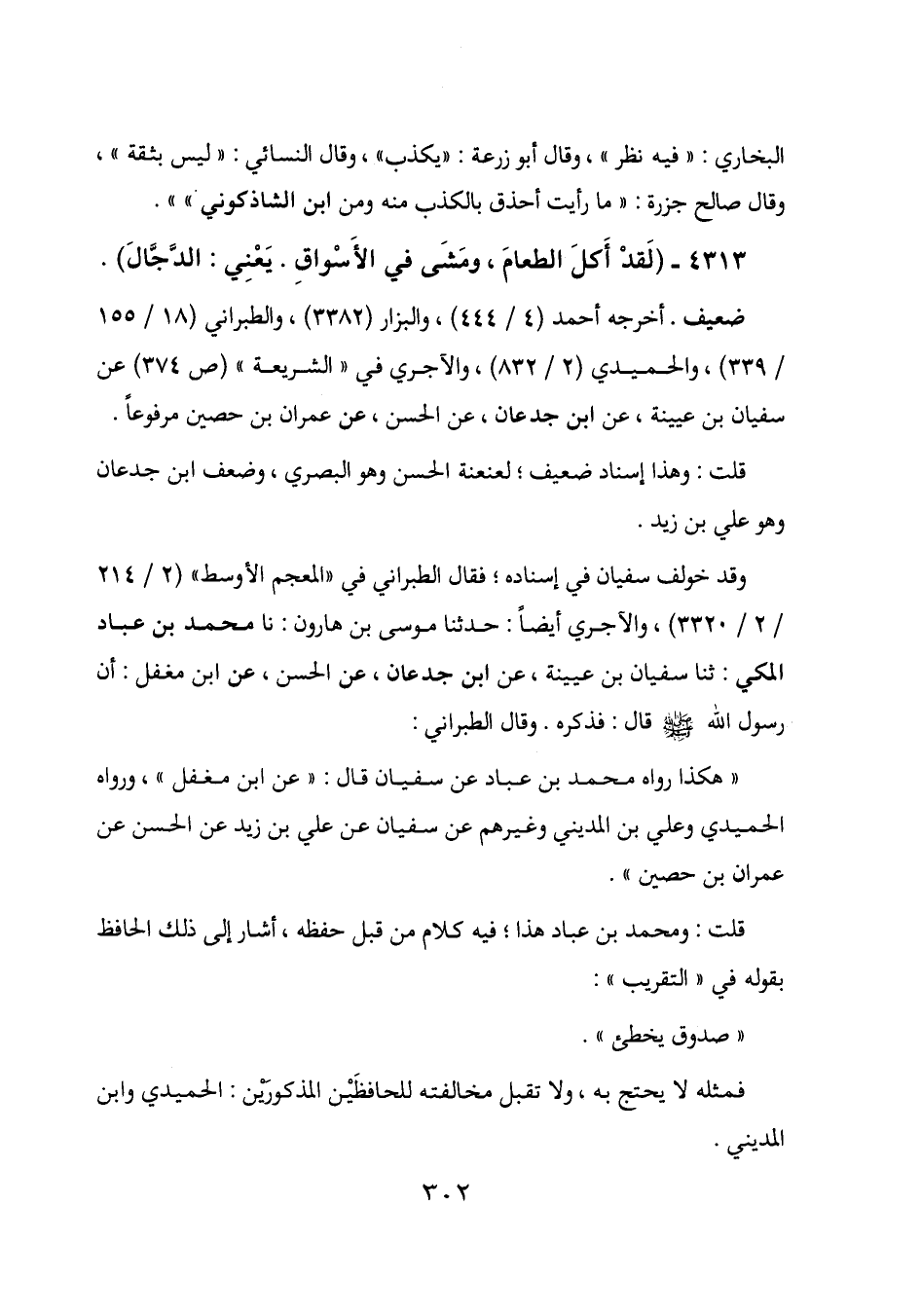 4313 - (لقد أكل الطعام، ومشى في الأسواق. يعني: الدجال) .