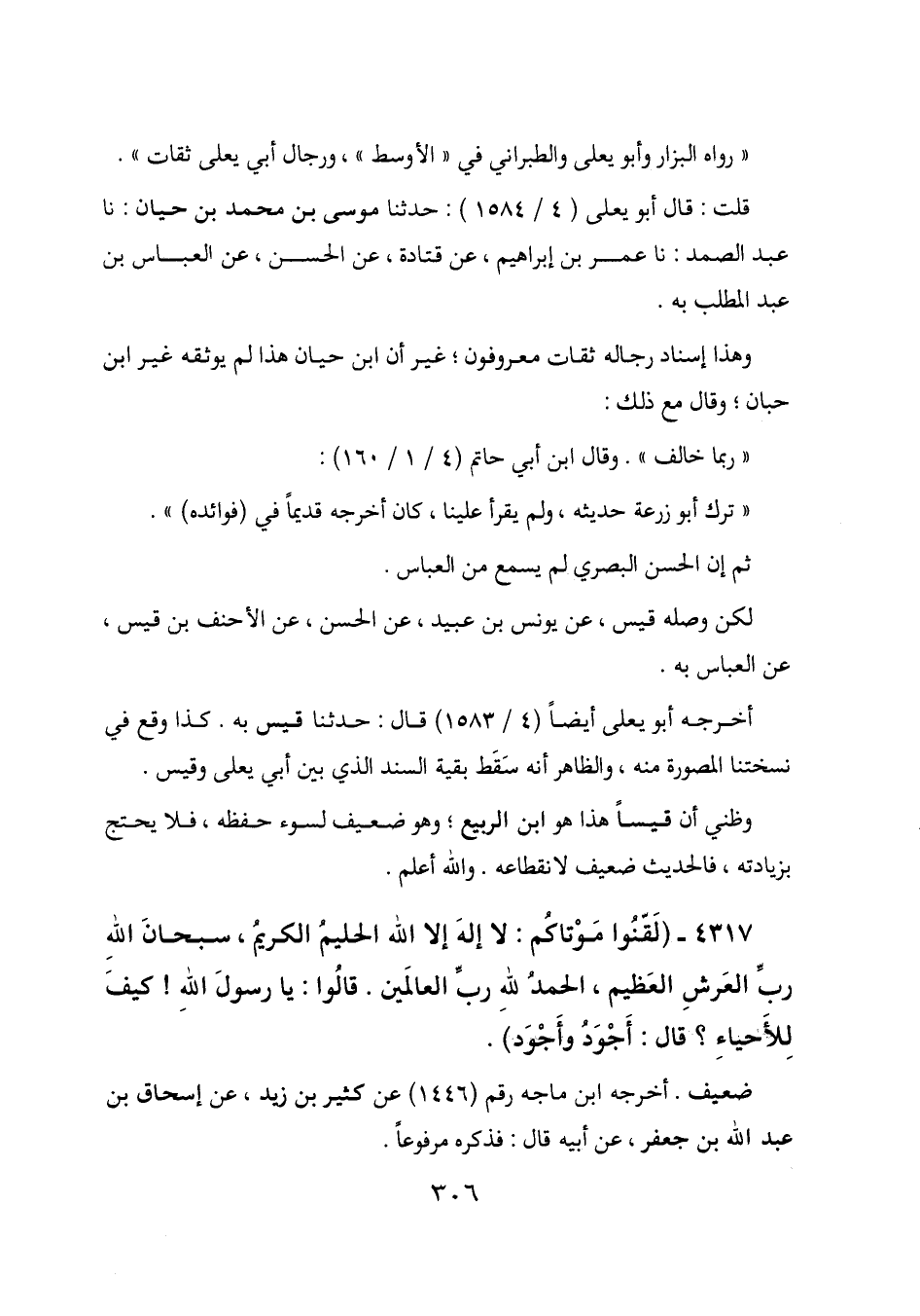 قلت: قال أبو يعلى (4/ 1584) : حدثنا موسى بن محمد بن حيان: أخبرنا عبد الصمد: أخبرنا عمر بن إبراهيم، عن قتادة، عن الحسن، عن العباس بن عبد المطلب به.