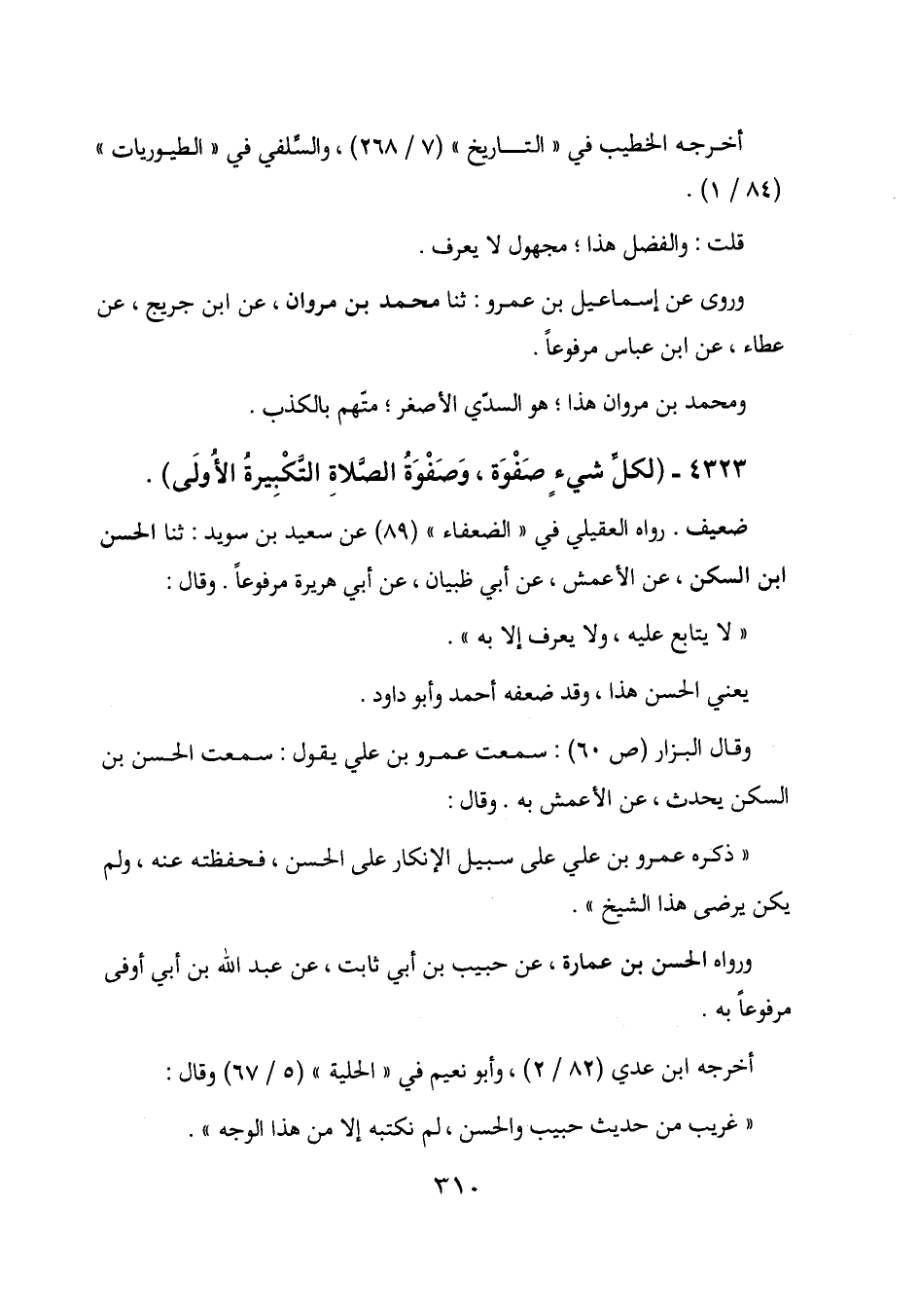 4323 - (لكل شيء صفوة، وصفوة الصلاة التكبيرة الأولى) .