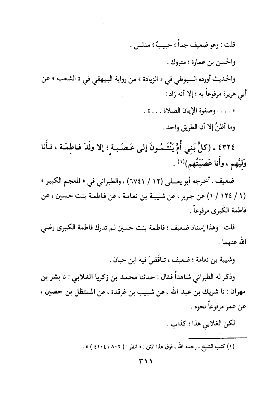 4324 - (كل بني أم ينتمون إلى عصبة؛ إلا ولد فاطمة، فأنا وليهم، وأنا عصبتهم) (1) .
