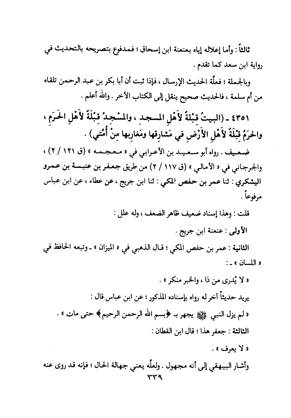 4351 - (البيت قبلة لأهل المسجد، والمسجد قبلة لأهل الحرم، والحرم قبلة لأهل الأرض في مشارقها ومغاربها من أمتي) .
