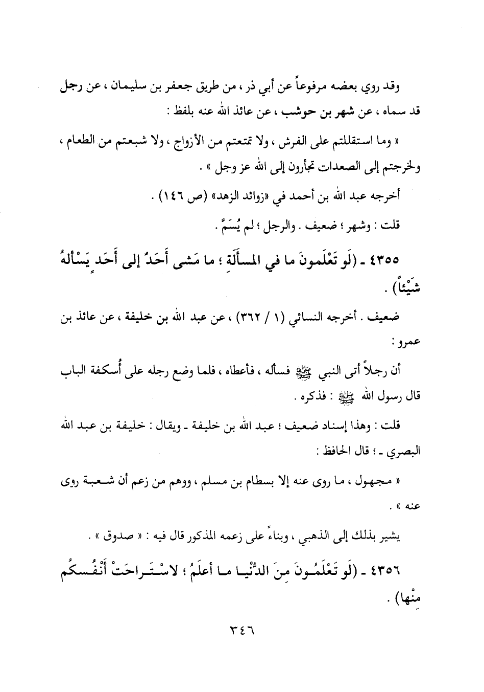 4355 - (لو تعلمون ما في المسألة؛ ما مشى أحد إلى أحد يسأله شيئاً) .
