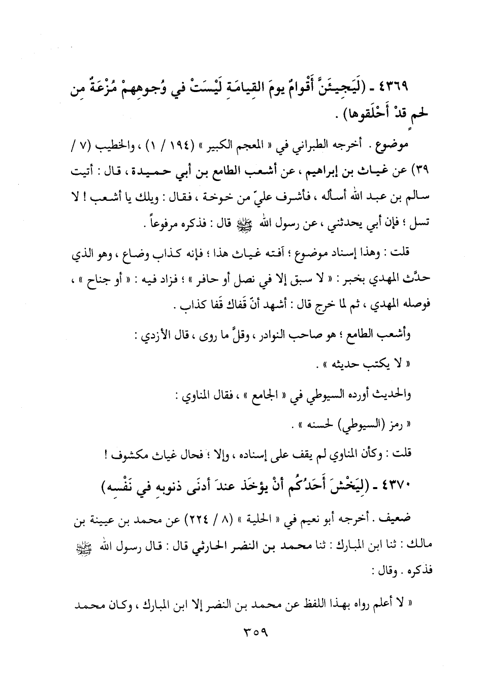 4369 - (ليجيئن أقوام يوم القيامة ليست في وجوههم مزعة من لحم قد أحلقوها) .