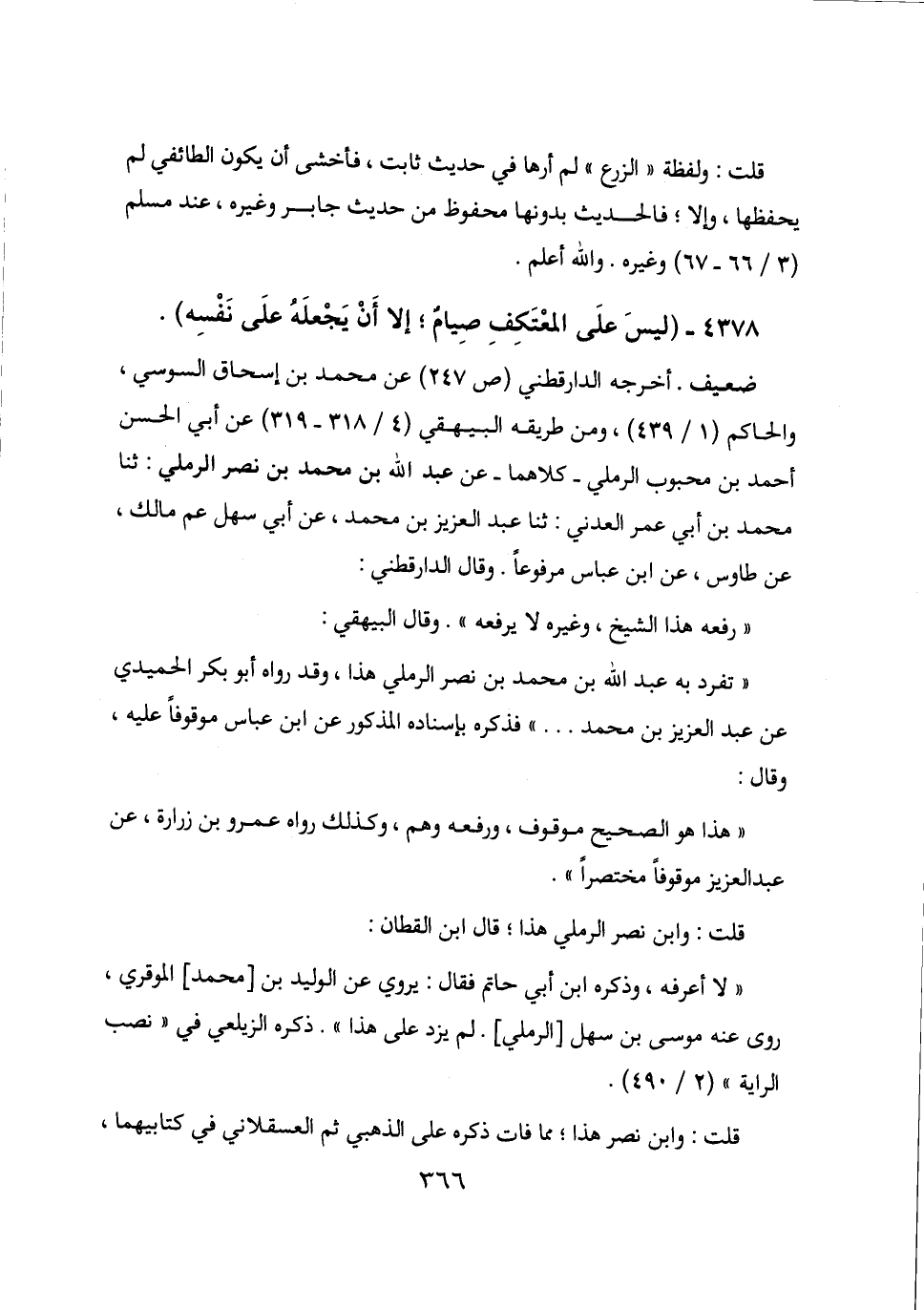 4378 - (ليس على المعتكف صيام؛ إلا أن يجعله على نفسه) .