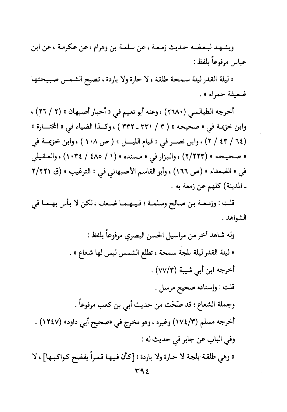 "ليلة القدر ليلة سمحة طلقة، لا حارة ولا باردة، تصبح الشمس صبيحتها ضعيفة حمراء".