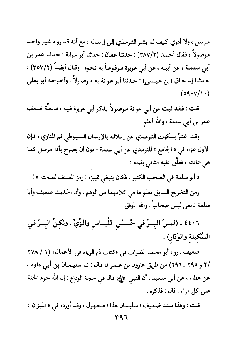 4406 - (ليس البر في حسن اللباس والزي. ولكن البر في السكينة والوقار) .