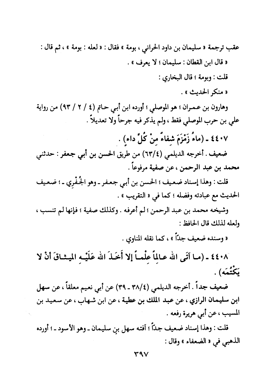 "وسنده ضعيف جداً"، كما نقله المناوي.