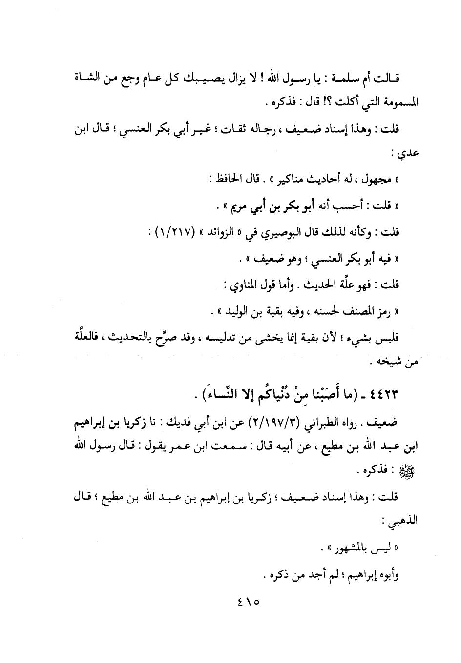 "فيه أبو بكر العنسي؛ وهو ضعيف".