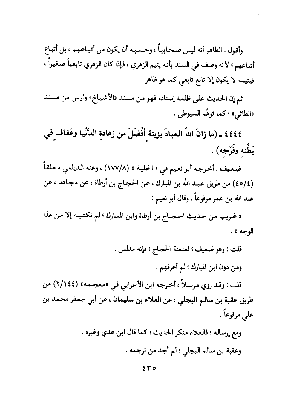 4444 - (ما زان الله العباد بزينة أفضل من زهادة الدنيا وعفاف في بطنه وفرجه) .