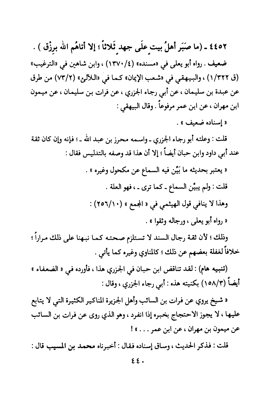 4452 - (ما صبر أهل بيت على جهد ثلاثاً؛ إلا أتاهم الله برزق) .