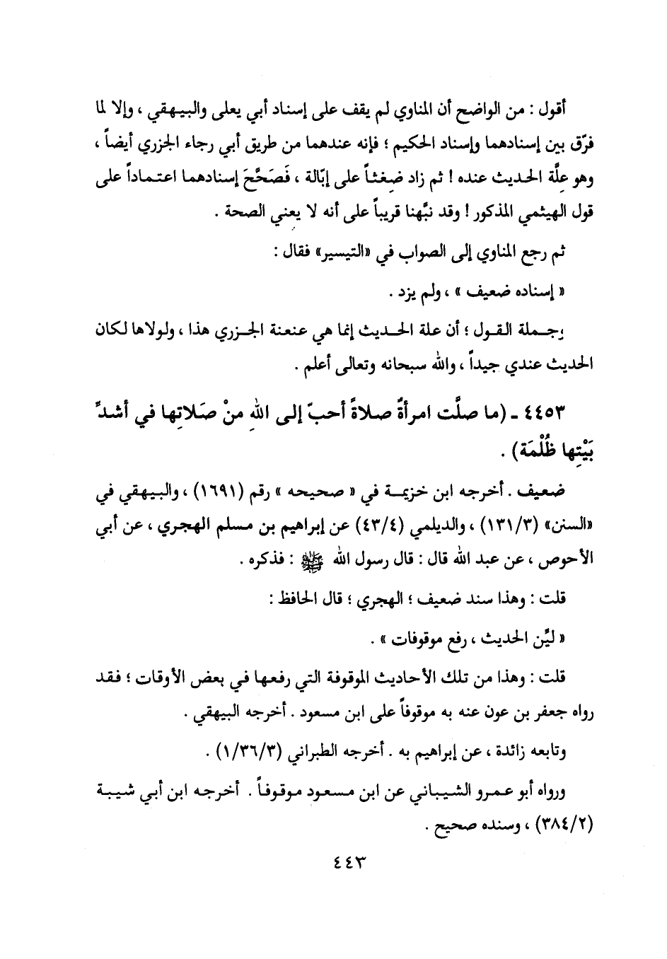 4453 - (ما صلت امرأة صلاة أحب إلى الله من صلاتها في أشد بيتها ظلمة) .