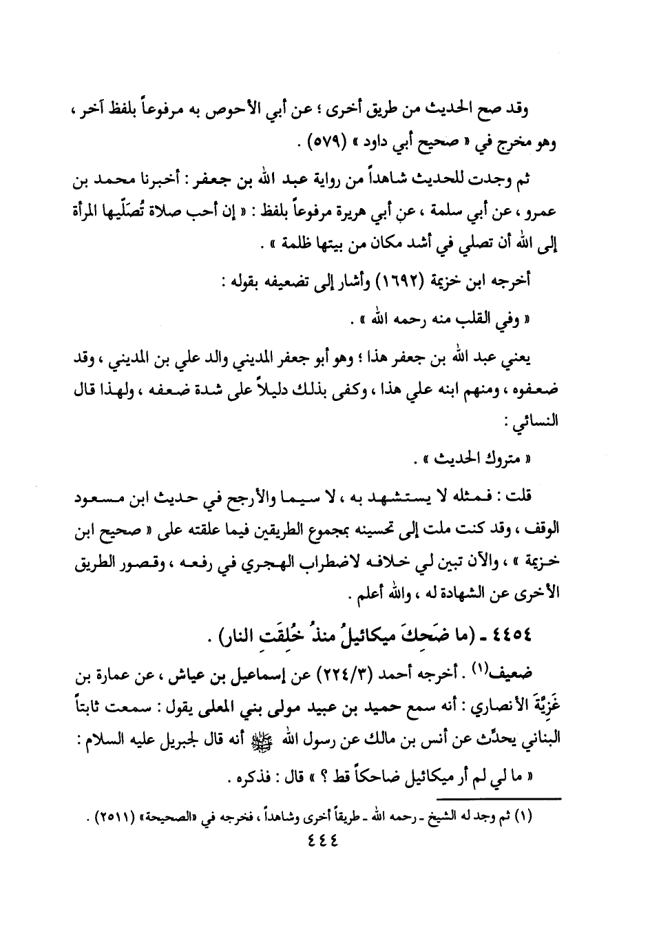 4454 - (ما ضحك ميكائيل منذ خلقت النار) .
