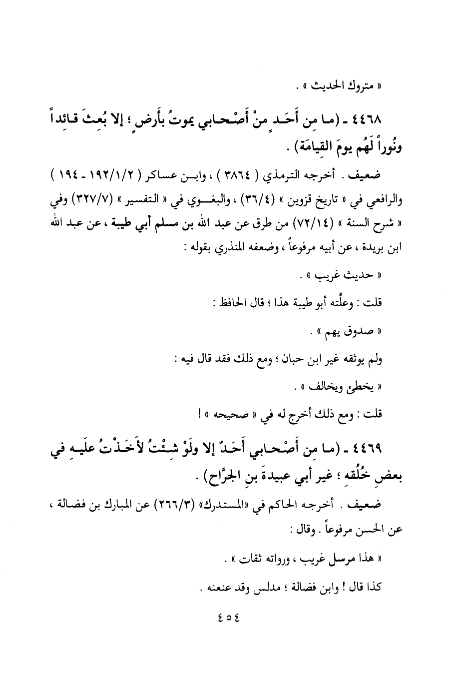 4468 - (ما من أحد من أصحابي يموت بأرض؛ إلا بعث قائداً ونوراً لهم يوم القيامة) .