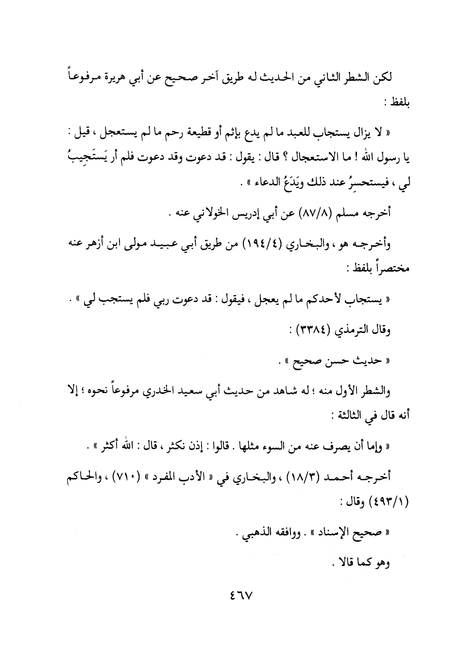 "لا يزال يستجاب للبعد ما لم يدع بإثم أو قطيعة رحم ما لم يستعجل، قيل: يا رسول الله! ما الاستعجال؟ قال: يقول: قد دعوت وقد دعوت فلم أر يستجيب لي، فيستحسر عند ذلك ويدع الدعاء".