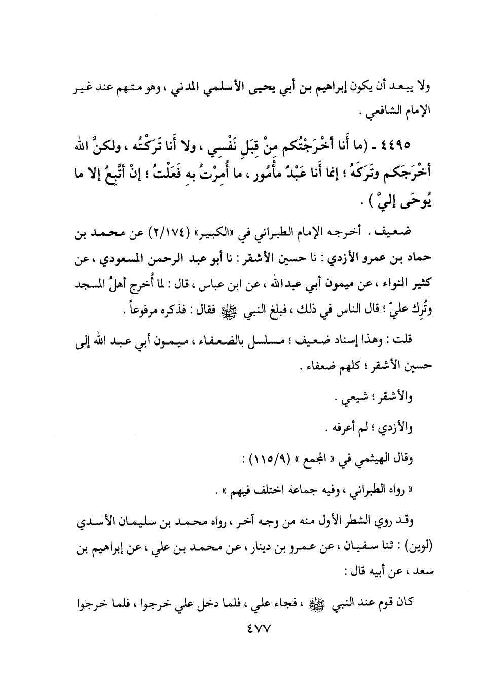 4495 - (ما أنا أخرجتكم من قبل نفسي، ولا أنا تركته، ولكن الله أخرجكم وتركه؛ إنما أنا عبد مأمور، ما أمرت به فعلت؛ إن أتبع إلا ما يوحى إلي) .