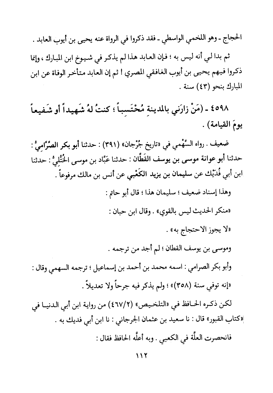 4598 - (من زارني بالمدينة محتسباً؛ كنت له شهيداً أو شفيعاً يوم القيامة) .