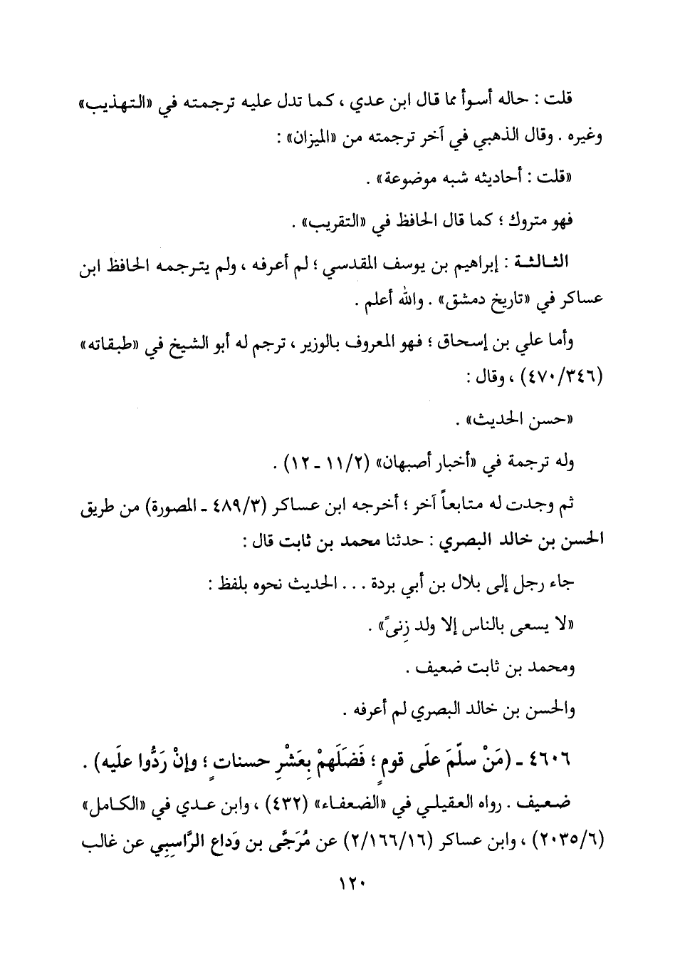 4606 - (من سلم على قوم؛ فضلهم بعشر حسنات؛ وإن ردوا عليه) .