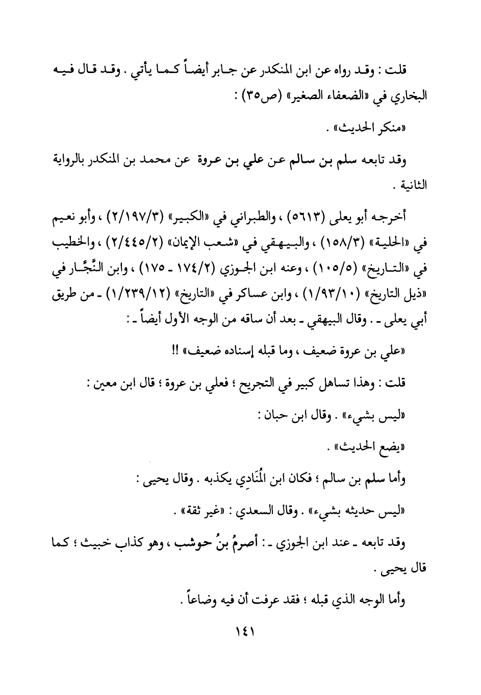 "ليس حديثه بشيء". وقال السعدي: "غير ثقة".