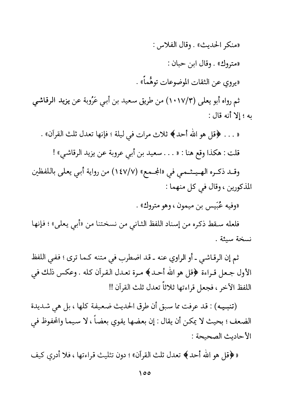ثم إن الرقاشي - أو الراوي عنه - قد اضطرب في متنه كما ترى؛ ففي اللفظ الأول جعل قراءة (قل هو الله أحد) مرة تعدل القرآن كله. وعكس ذلك في اللفظ الآخر، فجعل قراءتها ثلاثاً تعدل ثلث القرآن!!