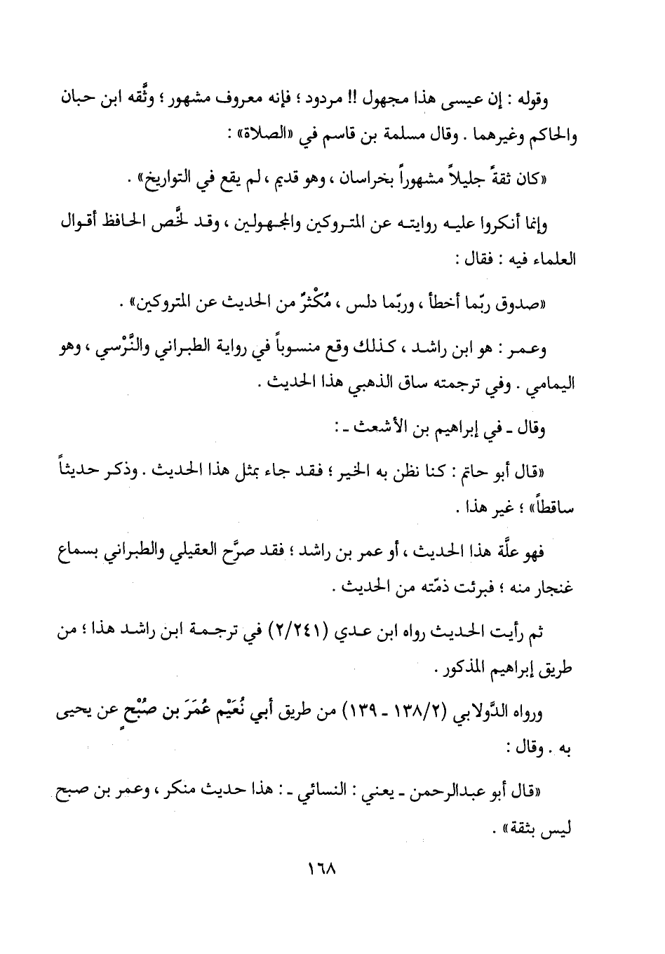 وقوله: إن عيسى هذا مجهول!! مردود؛ فإنه معروف مشهور؛ وثقه ابن حبان والحاكم وغيرهما. وقال مسلمة بن قاسم في "الصلاة":