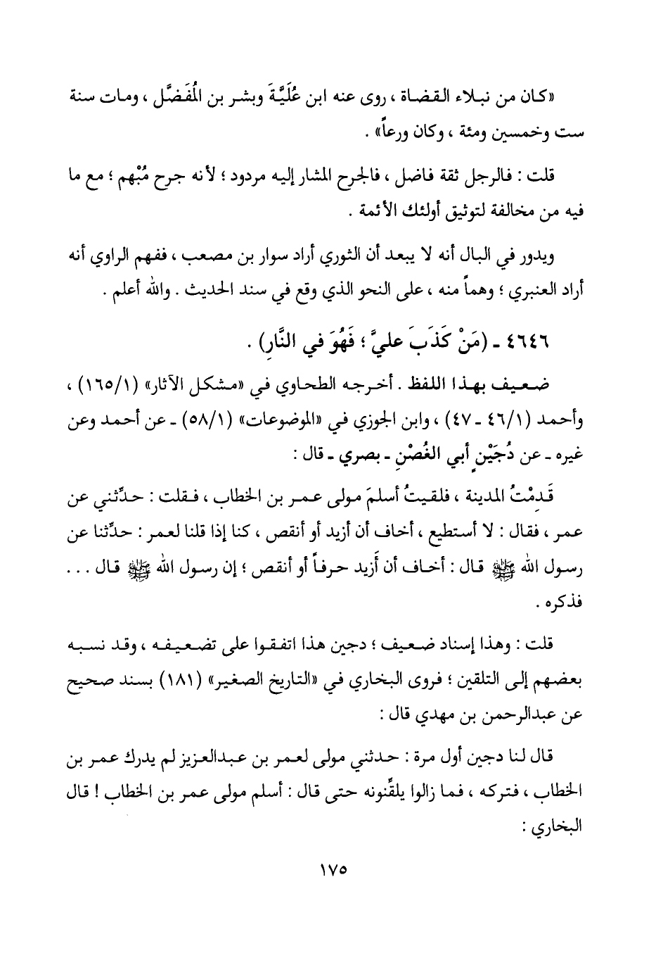 ويدور في البال أنه لا يبعد أن الثوري أراد سوار بن مصعب، ففهم الراوي أنه أراد العنبري؛ وهماً منه، على النحو الذي وقع في سند الحديث. والله أعلم.