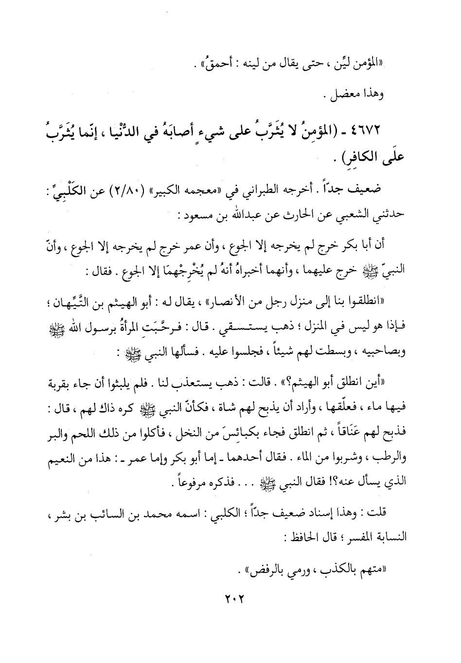 4672 - (المؤمن لا يثرب على شيء أصابه في الدنيا، إنما يثرب على الكافر) .