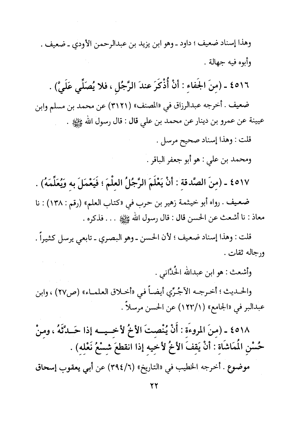 4518 - (من المروءة: أن ينصت الأخ لأخيه إذا حدثه، ومن حسن المماشاة: أن يقف الأخ لأخيه إذا انقطع شسع نعله) .