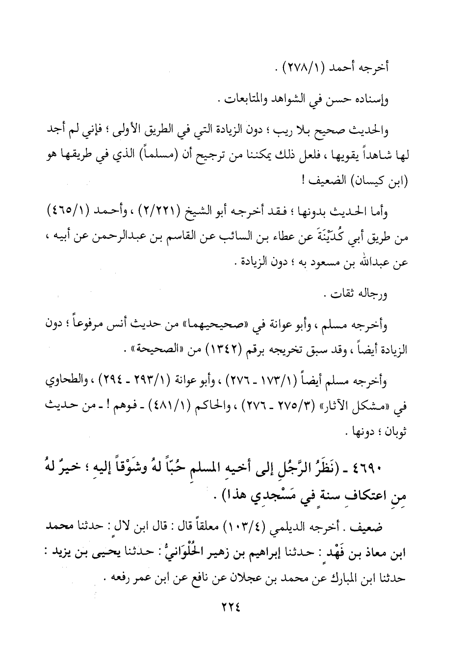 4690 - (نظر الرجل إلى أخيه المسلم حباً له وشوقاً إليه؛ خير له من اعتكاف سنة في مسجدي هذا) .