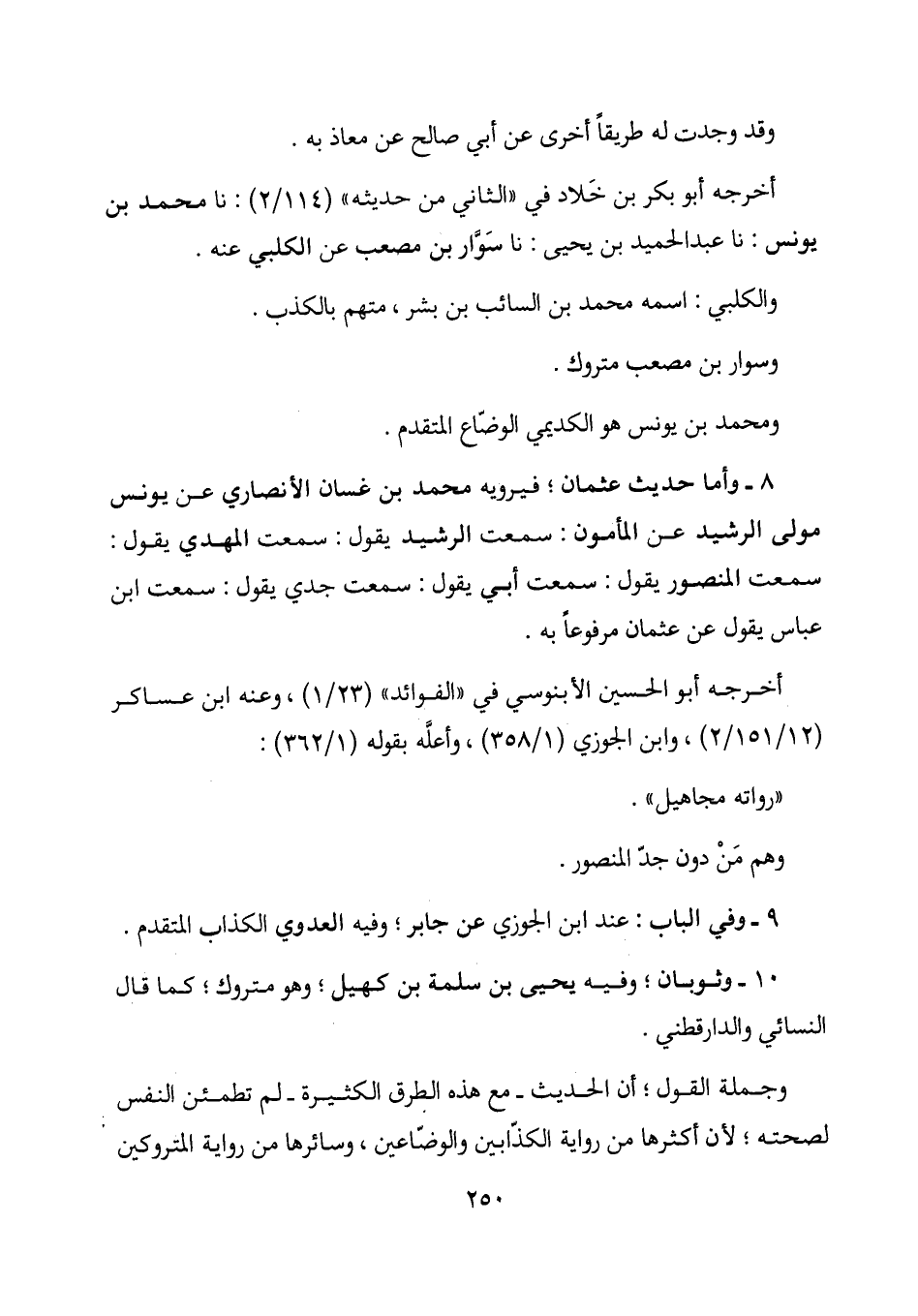 8- وأما حديث عثمان؛ فيرويه محمد بن غسان الأنصاري عن يونس مولى الرشيد عن المأمون: سمعت الرشيد يقول: سمعت المهدي يقول: سمعت المنصور يقول: سمعت أبي يقول: سمعت جدي يقول: سمعت ابن عباس يقول عن عثمان مرفوعاً به.