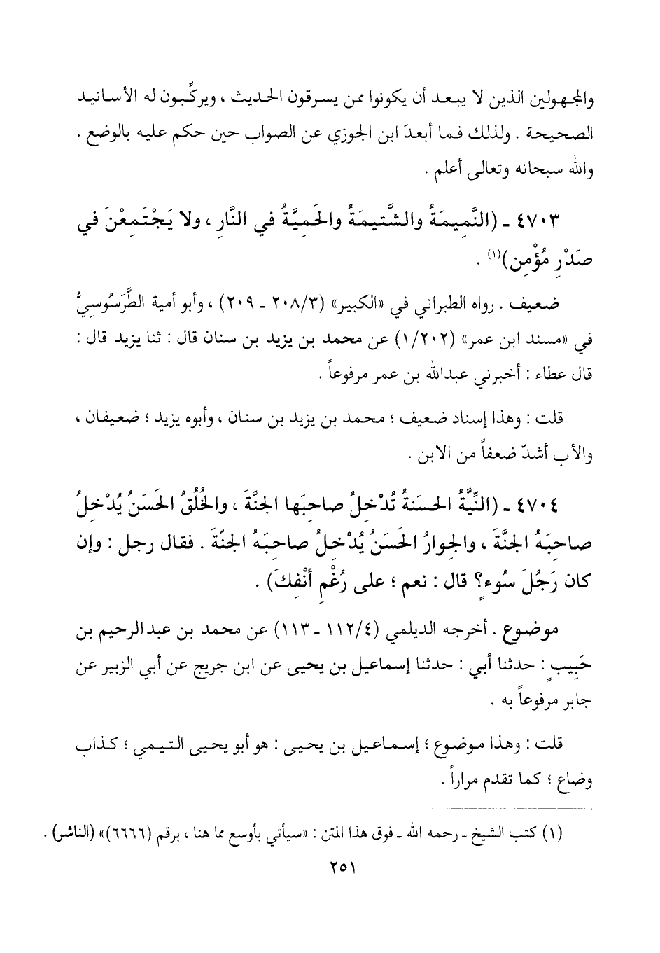 والمجهولين الذين لا يبعد أن يكونوا ممن يسرقون الحديث، ويركبون له الأسانيد الصحيحة. ولذلك فما أبعد ابن الجوزي عن الصواب حين حكم عليه بالوضع. والله سبحانه وتعالى أعلم.