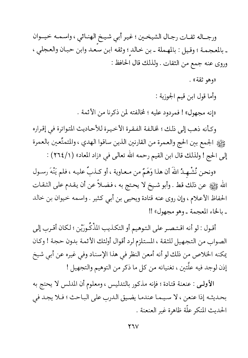 "ونحن نشهد الله أن هذا وهم من معاوية، أو كذب عليه، فلم ينه رسول الله - صلى الله عليه وسلم - عن ذلك قط. وأبو شيخ لا يحتج به، فضلاً عن أن يقدم على الثقات الحفاظ الأعلام، وإن روى عنه قتادة ويحيى بن أبي كثير. واسمه خيوان بن خالد - بالخاء المعجمة - وهو مجهول"!!