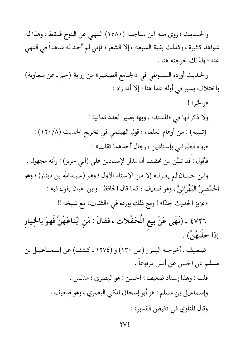 والحديث؛ روى منه ابن ماجه (1580) النهي عن النوح فقط، وهذا له شواهد كثيرة، وكذلك بقية السبعة، إلا الشعر؛ فإني لم أجد له شاهداً في النهي عنه؛ ولذلك خرجته هنا.