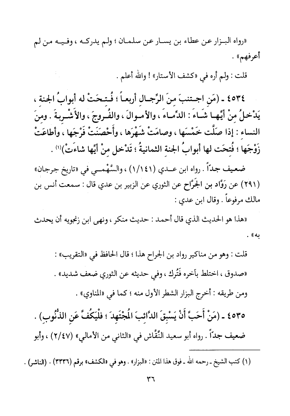(1) كتب الشيخ - رحمه الله - فوق هذا المتن: " البزار ". وهو في " الكشف " برقم (3336) . (الناشر)