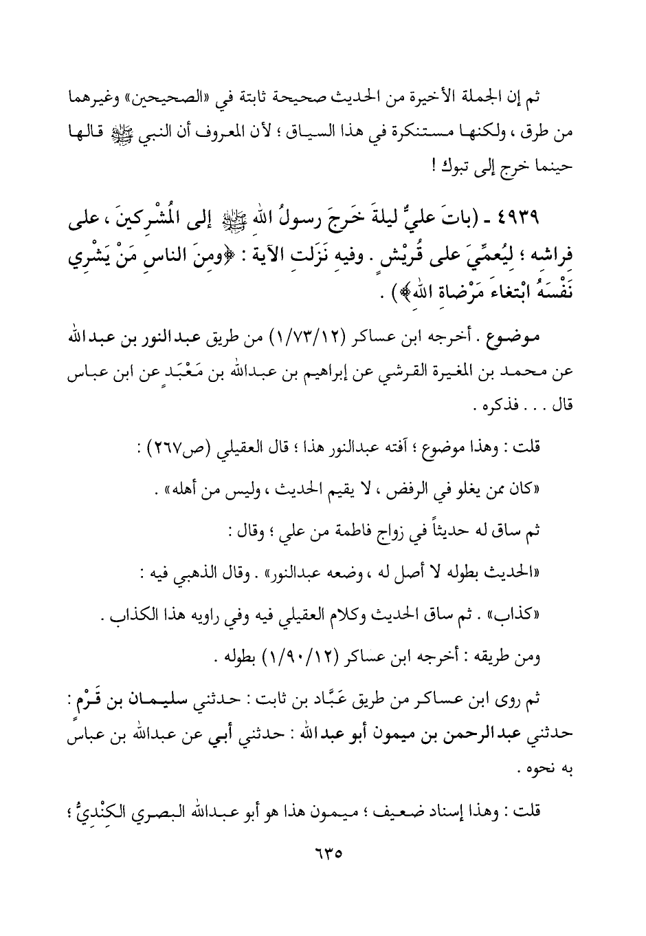 "كذاب". ثم ساق الحديث وكلام العقيلي فيه وفي راويه هذا الكذاب.