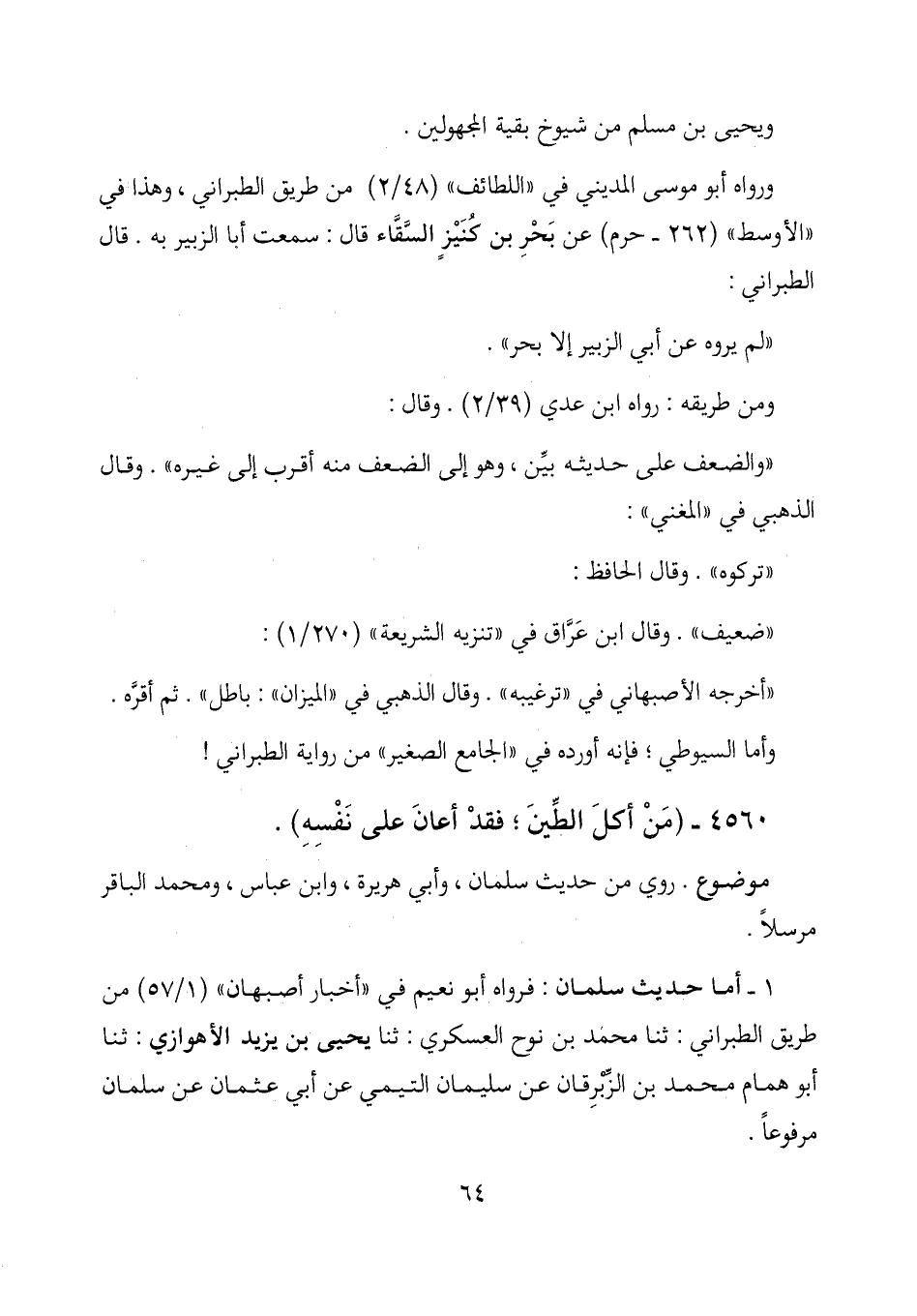 1- أما حديث سلمان: فرواه أبو نعيم في "أخبار أصبهان" (1/ 57) من طريق الطبراني: حدثنا محمد بن نوح العسكري: حدثنا يحيى بن يزيد الأهوازي: حدثنا أبو همام محمد بن الزبرقان عن سليمان التيمي عن أبي عثمان عن سلمان مرفوعاً.