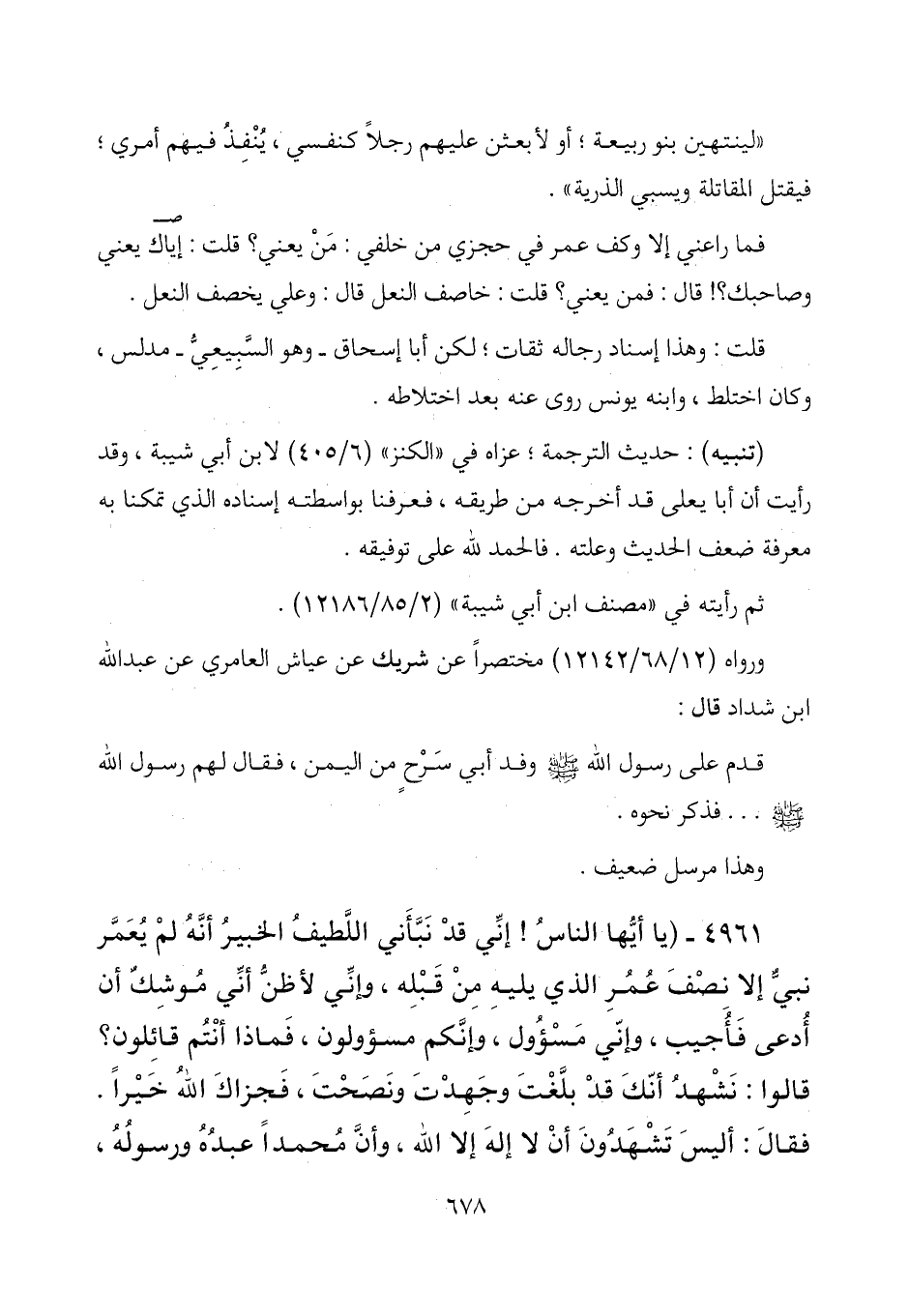 (تنبيه) : حديث الترجمة؛ عزاه في "الكنز" (6/ 405) لابن أبي شيبة، وقد رأيت أن أبا يعلى قد أخرجه من طريقه، فعرفنا بواسطته إسناده الذي تمكنا به معرفة ضعف الحديث وعلته. فالحمد لله على توفيقه.