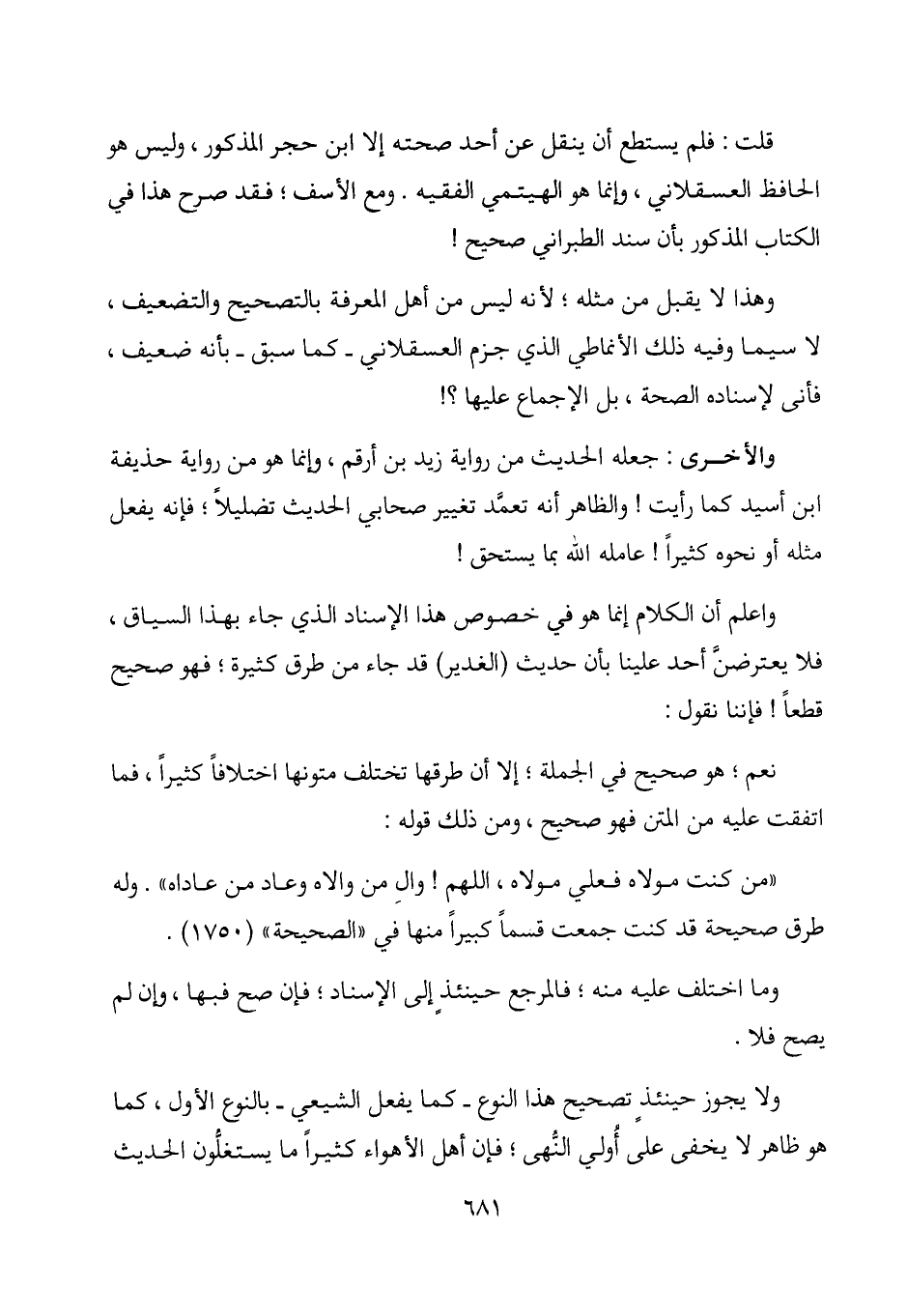 واعلم أن الكلام إنما هو في خصوص هذا الإسناد الذي جاء بهذا السياق، فلا يعترضن أحد علينا بأن حديث (الغدير) قد جاء من طرق كثيرة؛ فهو صحيح قطعاً! فإننا نقول: