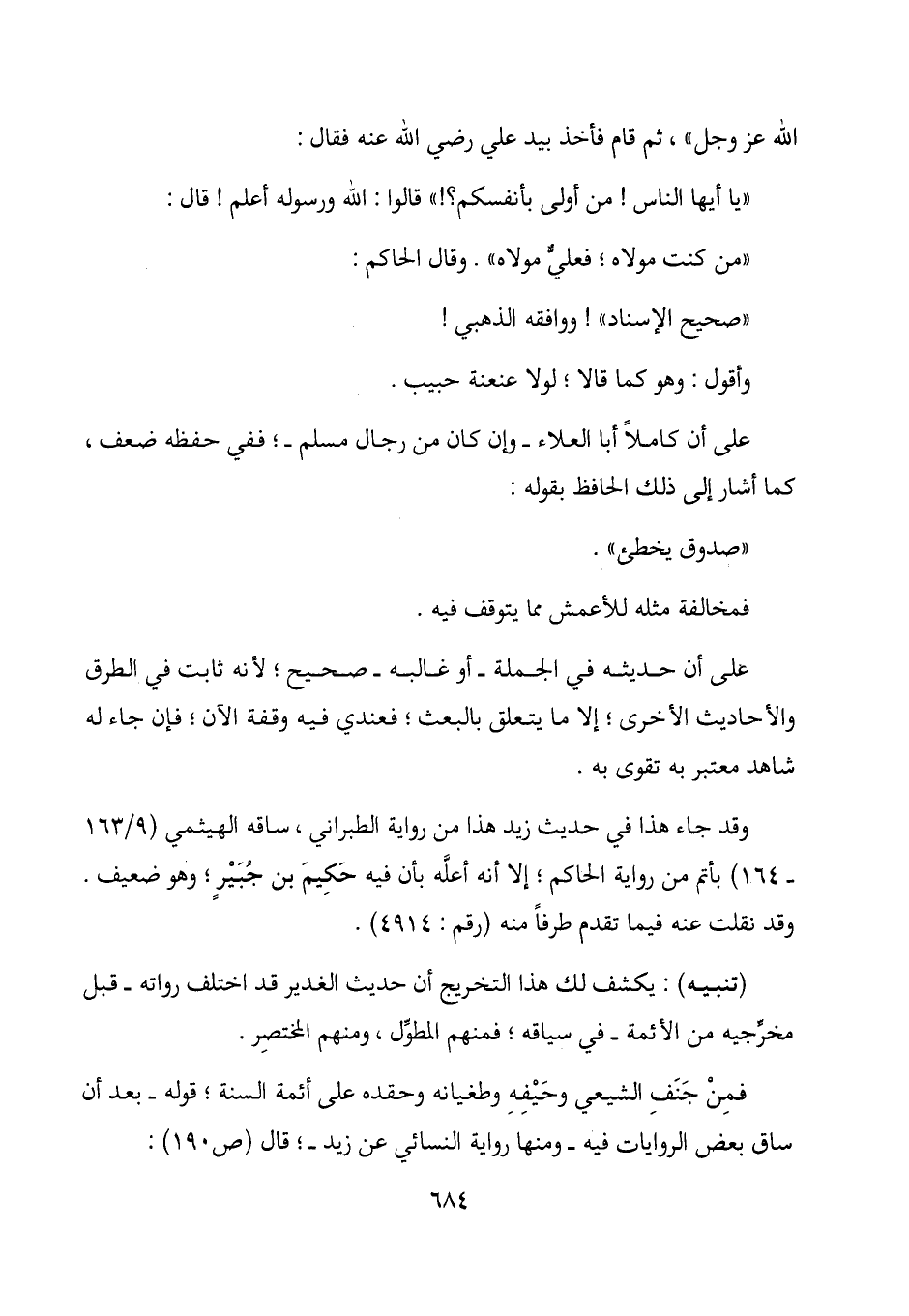 "من كنت مولاه؛ فعلي مولاه". وقال الحاكم:
