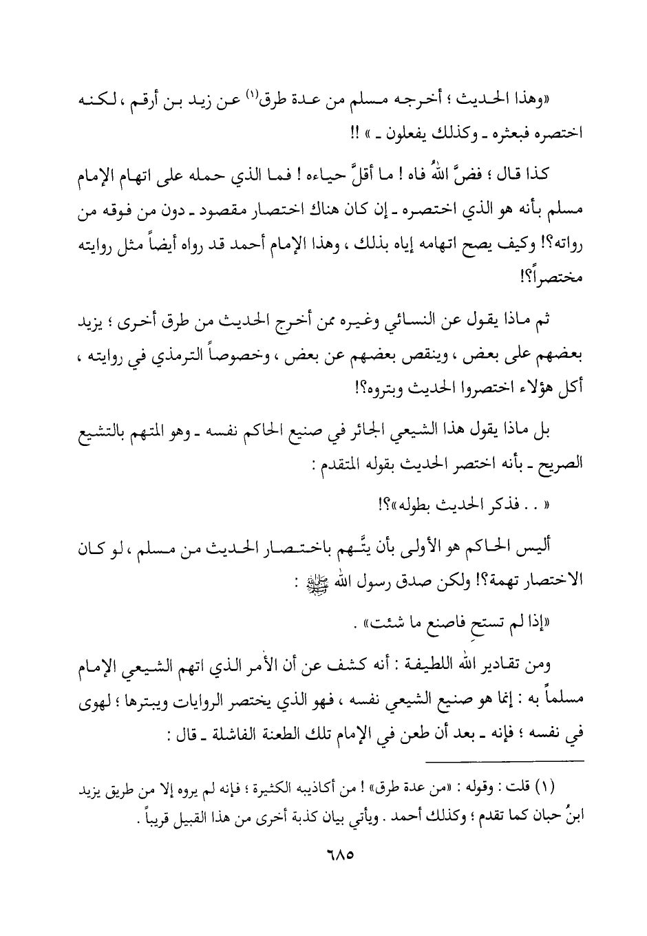 أليس الحاكم هو الأولى بأن يتهم باختصار الحديث من مسلم، لو كان الاختصار تهمة؟! ولكن صدق رسول الله - صلى الله عليه وسلم -: