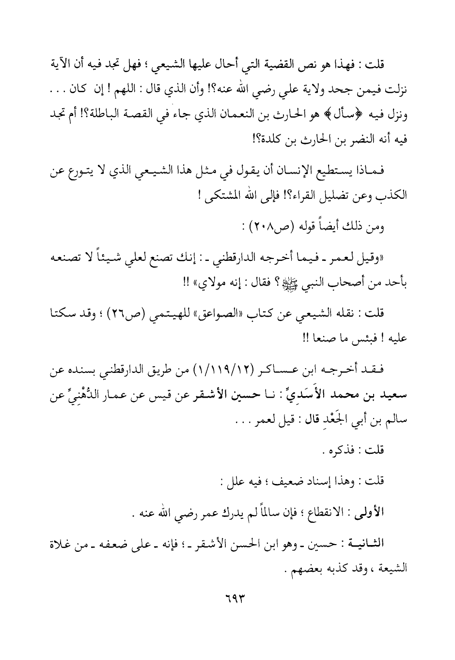 قلت: فهذا هو نص القضية التي أحال عليها الشيعي؛ فهل تجد فيه أن الآية نزلت فيمن جحد ولاية علي رضي الله عنه؟! وأن الذي قال: اللهم! إن كان ... ونزب فيه (سأل) هو الحارث بن النعمان الذي جاء في القصة الباطلة؟! أم تجد فيه أنه النضر بن الحارث بن كلدة؟!