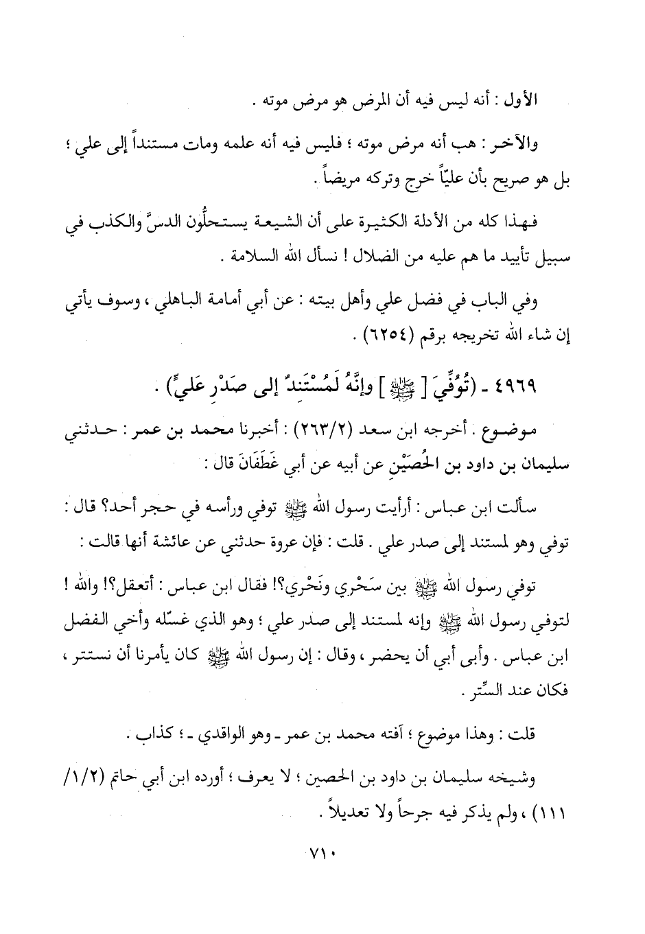 4969 - (توفي [- صلى الله عليه وسلم -] وإنه لمستند إلى صدر علي) .