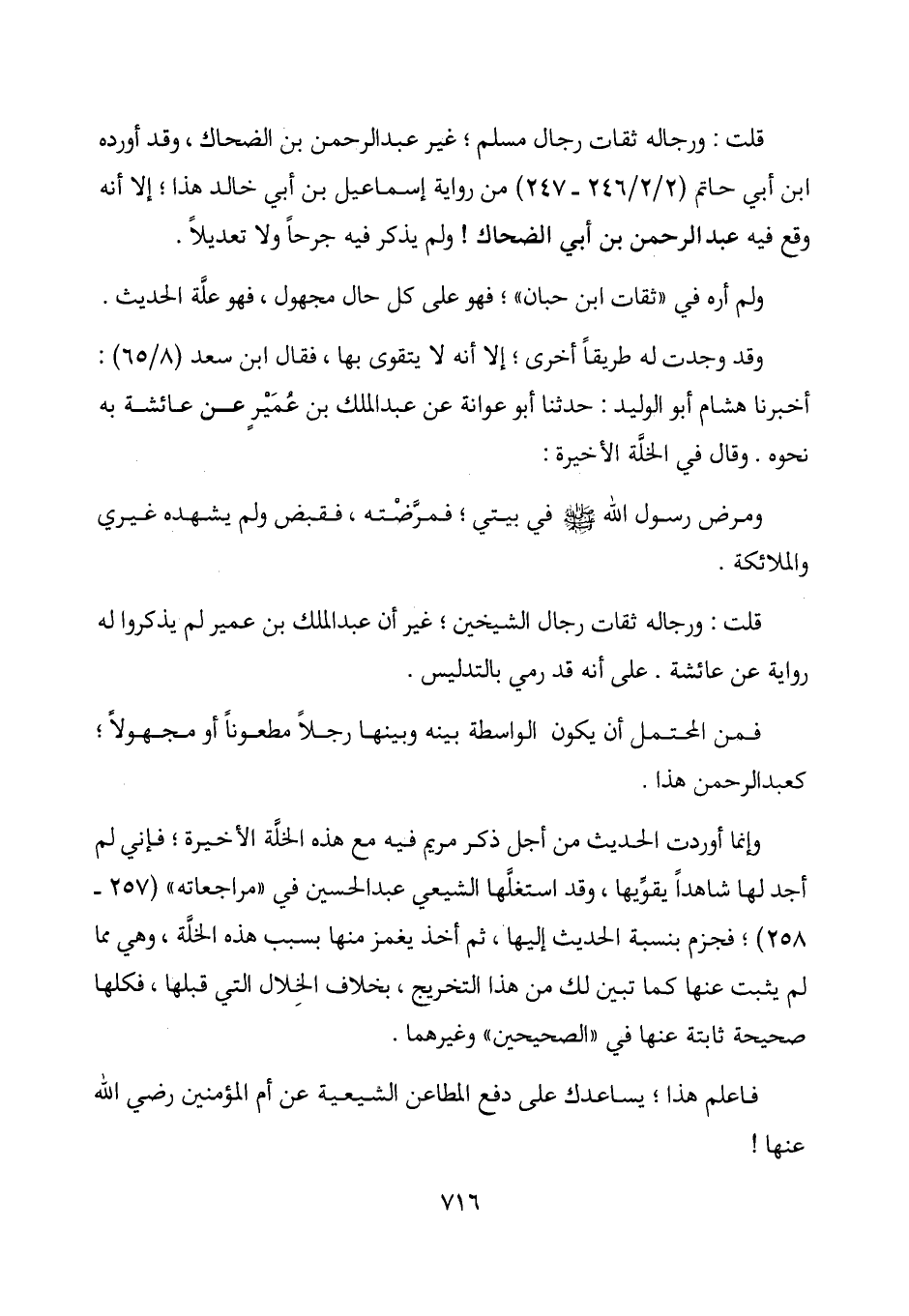 وإنما أوردت الحديث من أجل ذكر مريم فيه مع هذه الخلة الأخيرة؛ فإني لم أجد لها شاهداً يقويها، وقد استغلها الشيعي عبد الحسين في "مراجعاته" (257-258) ؛ فجزم بنسبة الحديث إليها، ثم أخذ يغمز منها بسبب هذه الخلة، وهي مما لم يثبت عنها كما تبين لك من هذا التخريج، بخلاف الخلال التي قبلها، فكلها صحيحة ثابتة عنها في "الصحيحين" وغيرهما.