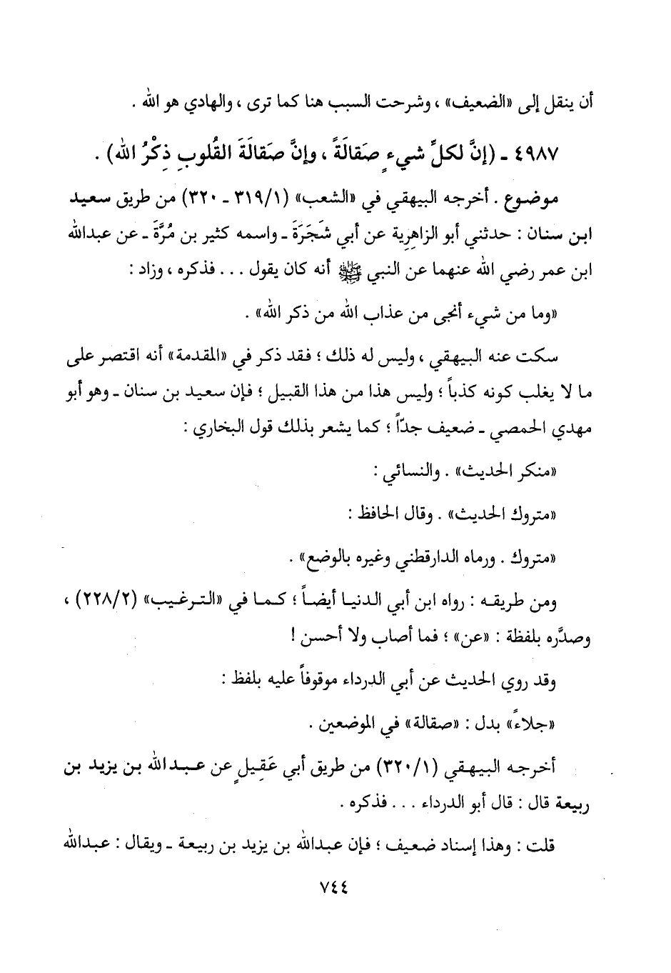4987 - (إن لكل شيء صقالة، وإن صقالة القلوب ذكر الله) .