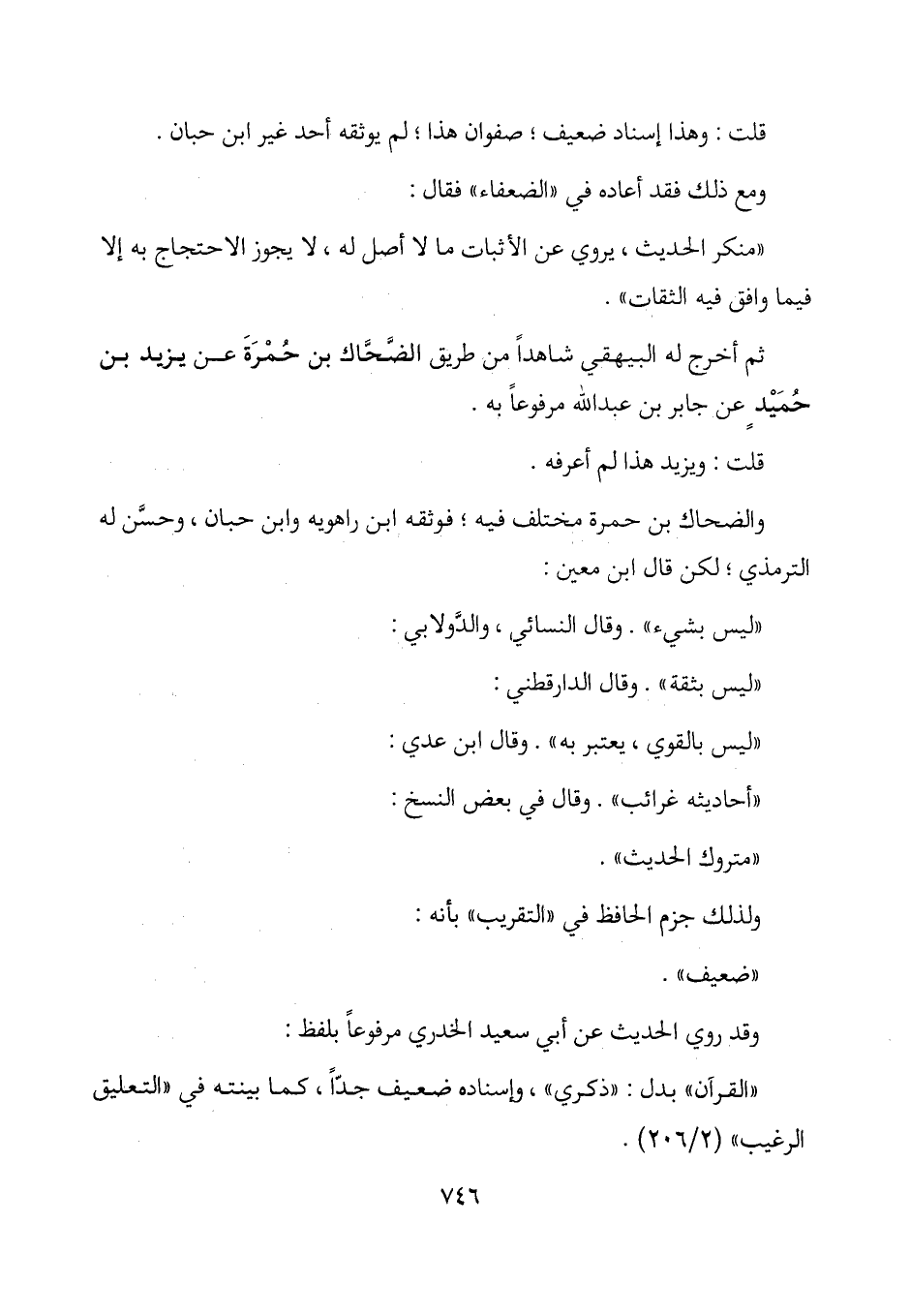 ثم أخرج له البيهقي شاهداً من طريق الضحاك بن حمرة عن يزيد بن حميد عن جابر بن عبد الله مرفوعاً به.